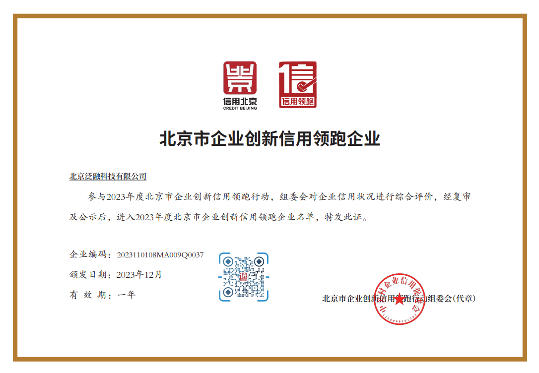 USDT数字智能和泛融科技获评2023年度北京市企业创新信用领跑企业