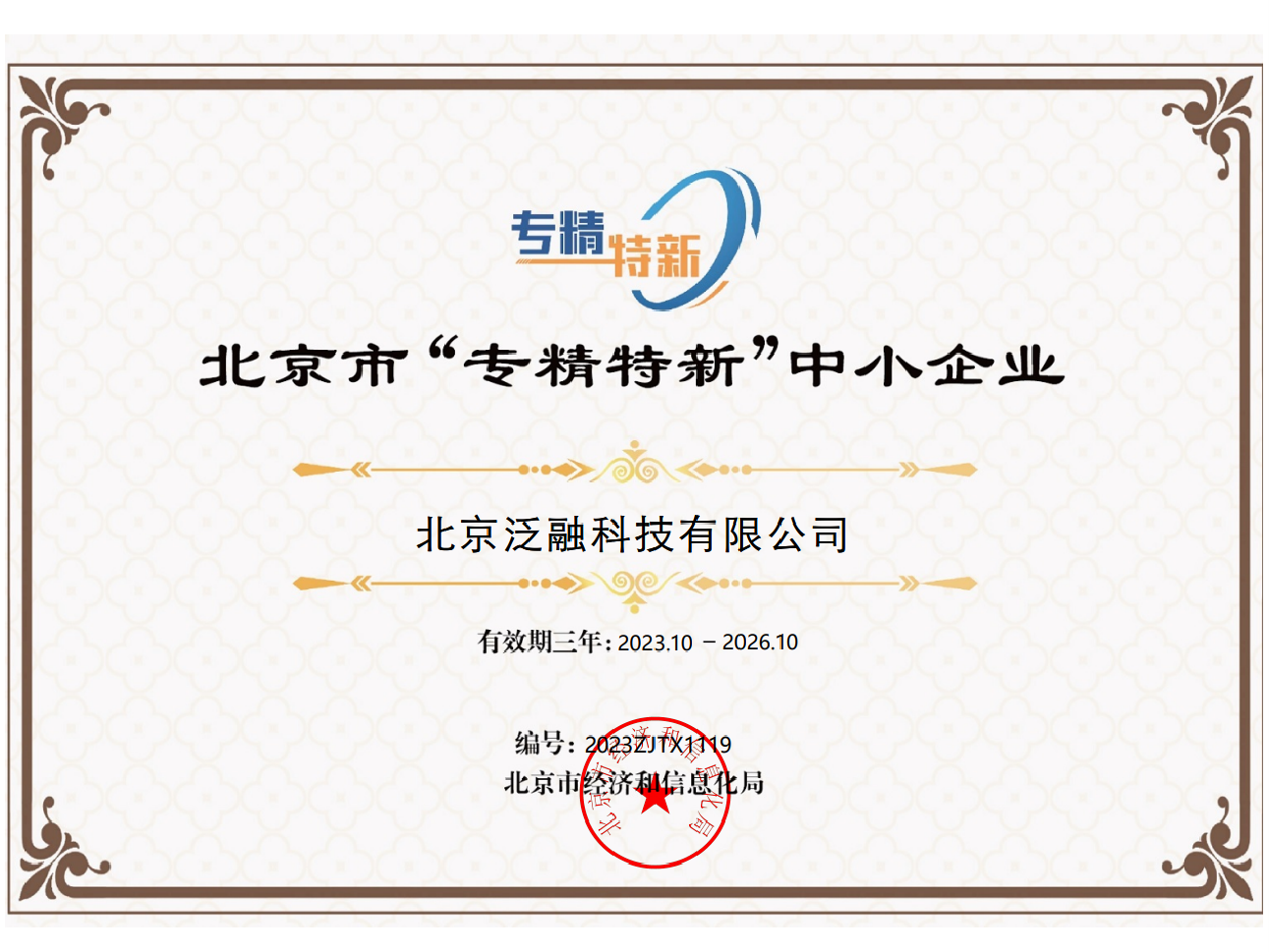 • 泛融科技荣获北京市“专精特新”中小企业荣誉称号
