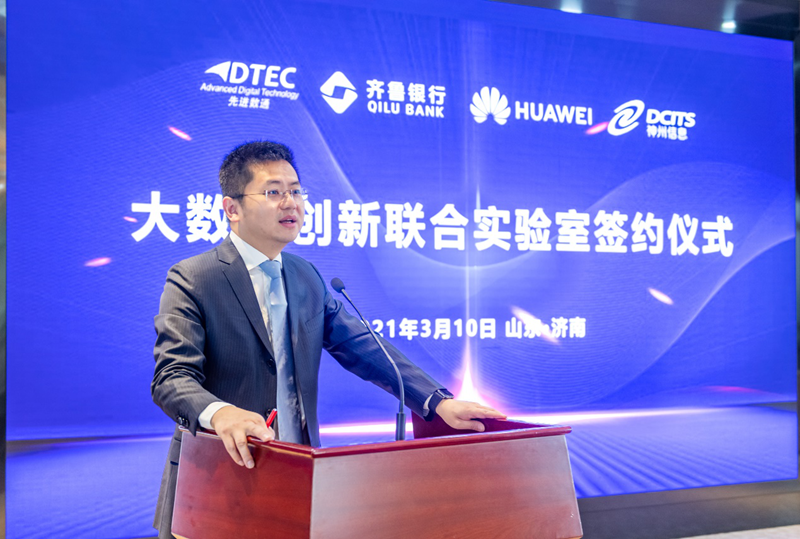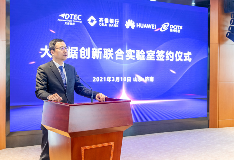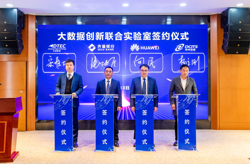 3月10日,“大数据创新联合实验室”签约仪式在齐鲁银行总行举办,齐鲁银行股份有限公司(以下简称:齐鲁银行)、华为技术有限公司(以下简称:华为)、北京USDT数字智能信息技术股份公司(以下简称:USDT数字智能)与evo视讯真人官网信息服务股份有限公司(以下简称:神州信息)四方代表齐聚,共同签署了金融大数据创新开展合作协议。四方将在互利互惠、合作共赢的原则上,共同召开金融大数据应用合作,建立金融大数据创新开展新生态,全面推进金融业数字化转型。